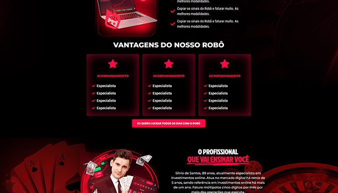 Pagina tipo landing page para capturar e vender cursos ou robôs para clientes interessados no investimento em trades, pagina construída no WordPress e editável no elementor.